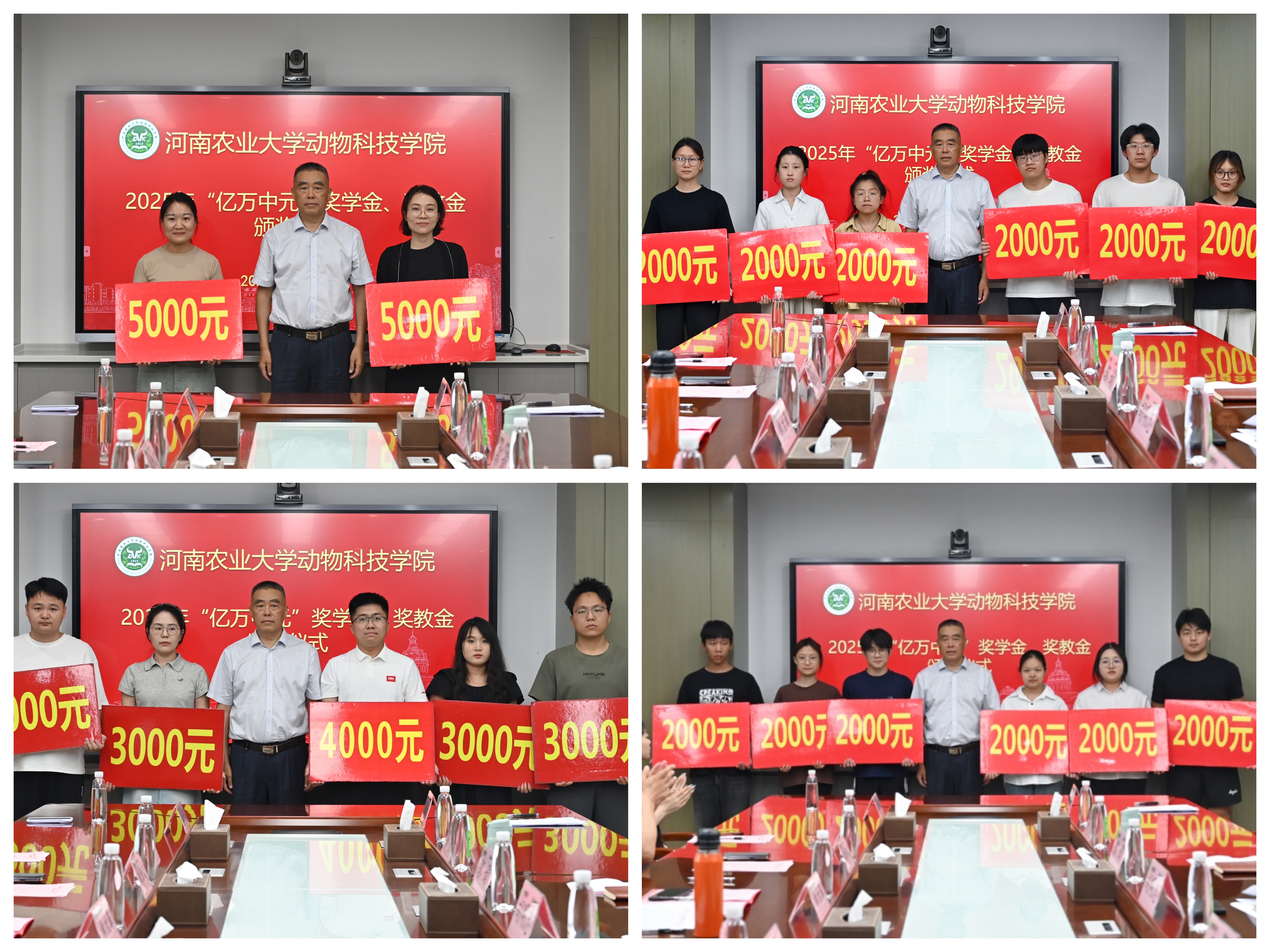 于龙子湖校区行政楼319会议室举行2025年“亿万中元”企业奖学金、奖教金颁奖仪式,河南亿万中元生物技术有限公司董事长郑文革、总裁朱宏凯、总经理郑秀娟、市场部经理苏云凤、办公室主任赵静凯、总经理助理郑鸿润、总经理助理李子菱、百家乐玩法