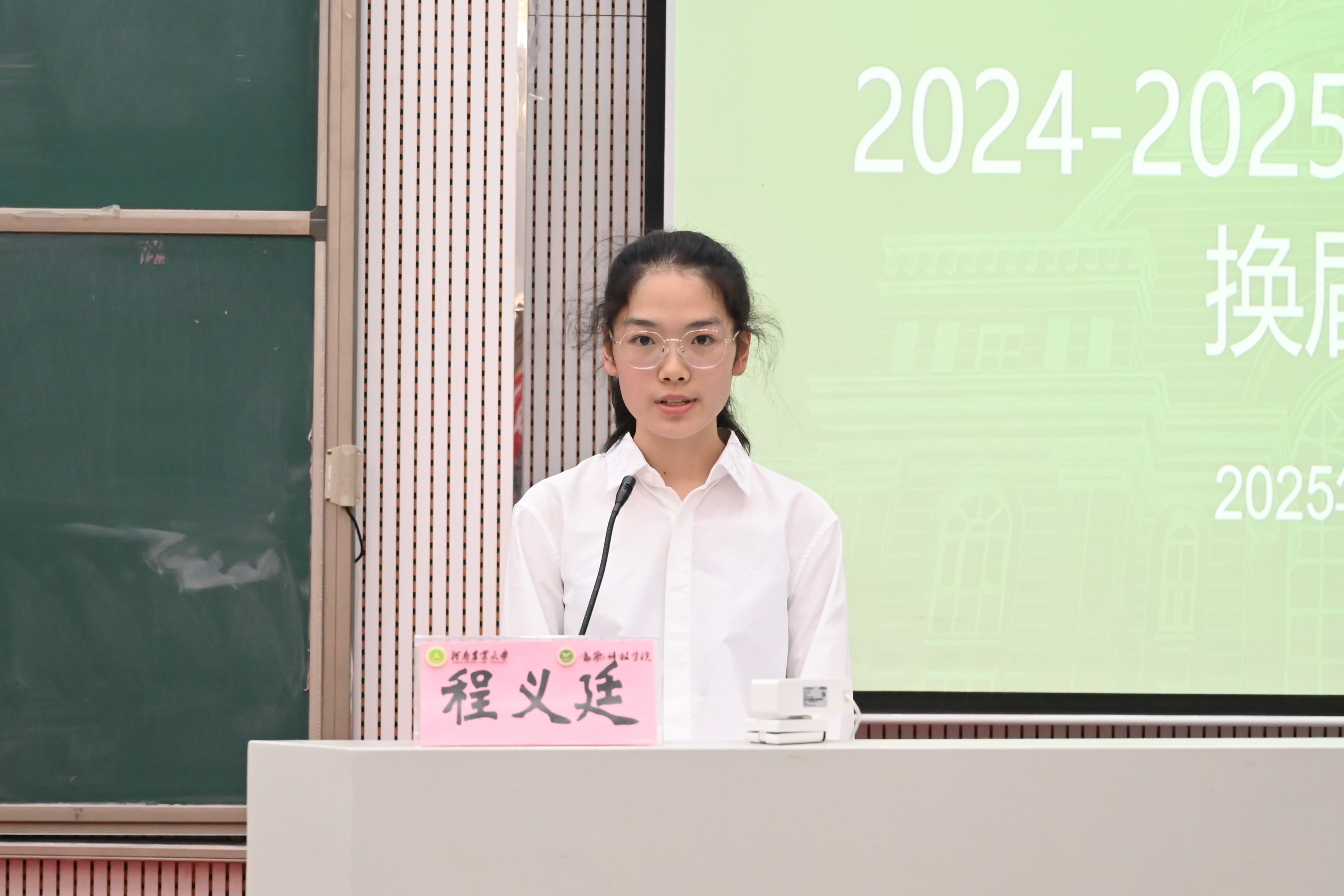 团委委员代表马一欣、党建办公室主任李春雨、学生会主席团代表周国梁依次进行工作总结汇报。各部门新一届候选人逐一登台发表竞选演讲,展现了学生骨干积极进取、追求卓越的良好风貌。随后,各位老师为22级学生干部颁发聘书,每份聘书,是认可更是期许,激励新任职者以行动践行青春担当。