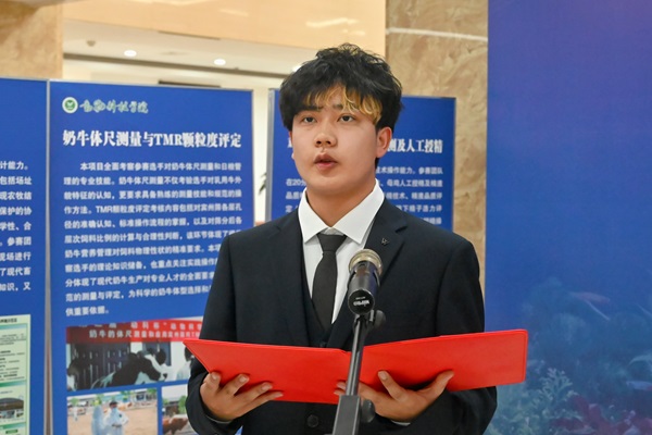 动物科学、智慧牧业、饲料工程、水产养殖等四大重点专业、包含了奶牛的体尺测量和应用宾州筛对全混合日粮(TMR)的颗粒度进行评定、生态畜牧场规划设计、饲料原料掺假快速鉴定与识别、水族箱造景等赛项,并辅以专业知识竞答。本着普遍参与重点选拔的理念,各赛项经初赛复赛环节最终进入决赛250余人,将角逐出一等奖4组、二等奖8组、三等奖12组。在往届成功经验基础上,进一步优化了赛制设置,强化了实操考核,突出产教融合特色,旨在通过“一专业一赛事一品牌”,深化产教融合,以赛促学,营造良好学习氛围,增强学生专业实践能力,培养更多契合产业发展的高素质复合型畜牧人才。