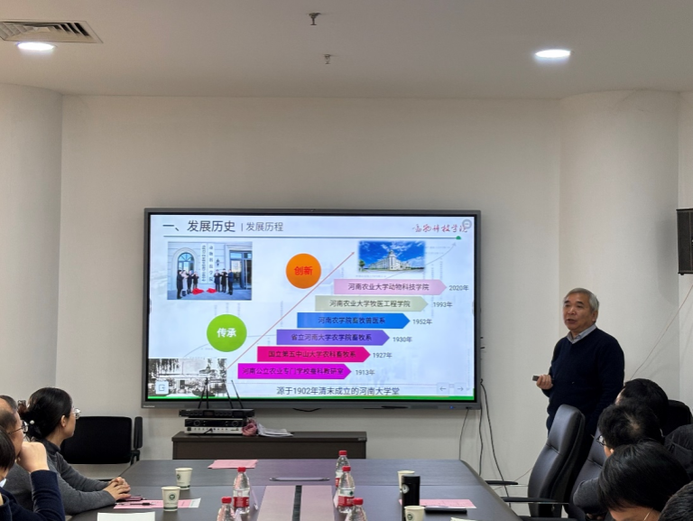 付彤对甘肃农业大学一行表示欢迎并简单介绍了双方参会人员。李明讲述了自己在甘肃农业大学的时的经历,现场气氛热烈。随后李明从发展历史、学科传承、师资队伍、科学研究、教育教学、人才培养、发展机遇等七个方面对百家乐玩法