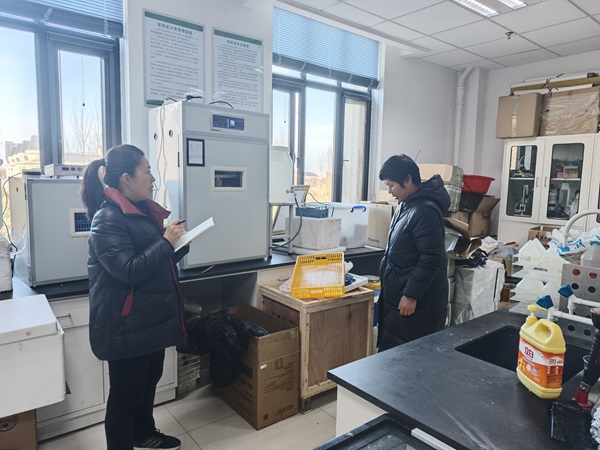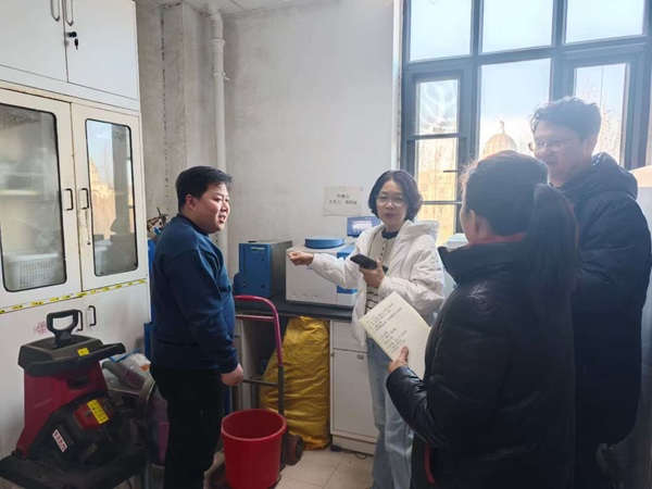 副院长酒梅菊、孙宇,中心实验室李改英老师等一行开展新学期实验室安全专项检查。期间,一行深入消防通道、实验室、自习室等各处风险点,重点检查了各实验室危化品暂存状况、消防设施情况、用水用电安全情况等,对现场检查出的相关问题提出了相应的整改意见和要求,并记录备案,切实做到安全工作不留死角,不留隐患。