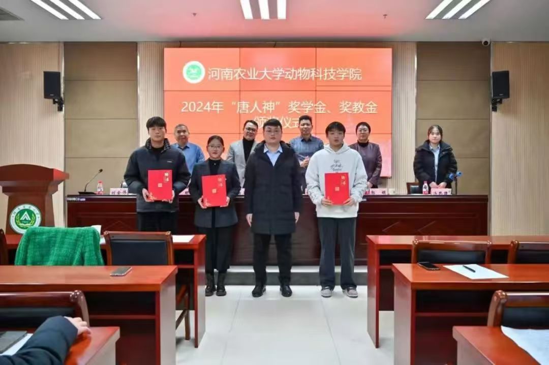 于龙子湖校区繁塔楼A324会议室举行2024年“唐人神”奖学金、奖教金颁奖暨第二届“唐人神班”开班仪式。唐人神集团(大学)执行校长赵海卫、唐人神集团人力资源中心招聘经理刘金伟和招聘主管汤思捷,校友办公室主任胡明忠、百家乐玩法