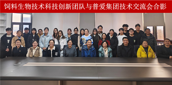 饲料生物技术科技创新团队与普爱集团,于12月23日在第一实验楼南501会议室成功举办了技术交流会。饲料生物技术科技创新团队带头人尹清强教授及其团队教师和研究生、普爱集团董事长王潇博士、营养总监卢富山博士、研发部经理郑妨、生物发酵部营养师徐李娟,技术研发管理中心配方经理姜东华等相关人员参与。