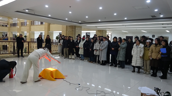 结合安全事故案例,李院长强调了实验室安全管理的重要性,要求各位研究生实验过程中严格遵守实验室各项规章制度,加强安全防护意识,规范操作,安全管理,保护自身和实验室财产安全。随后操作人员演示了灭火器和灭火毯的用法,到场的各位老师和同学进行了操作练习。