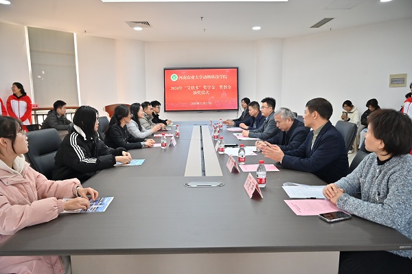 于龙子湖校区第一实验楼南501会议室举行2024年“艾格多”企业奖学金、奖教金颁奖仪式。河南艾格多科技集团有限公司总裁任振东与人资行政总监孙爱平、校友办主任胡明忠、百家乐玩法