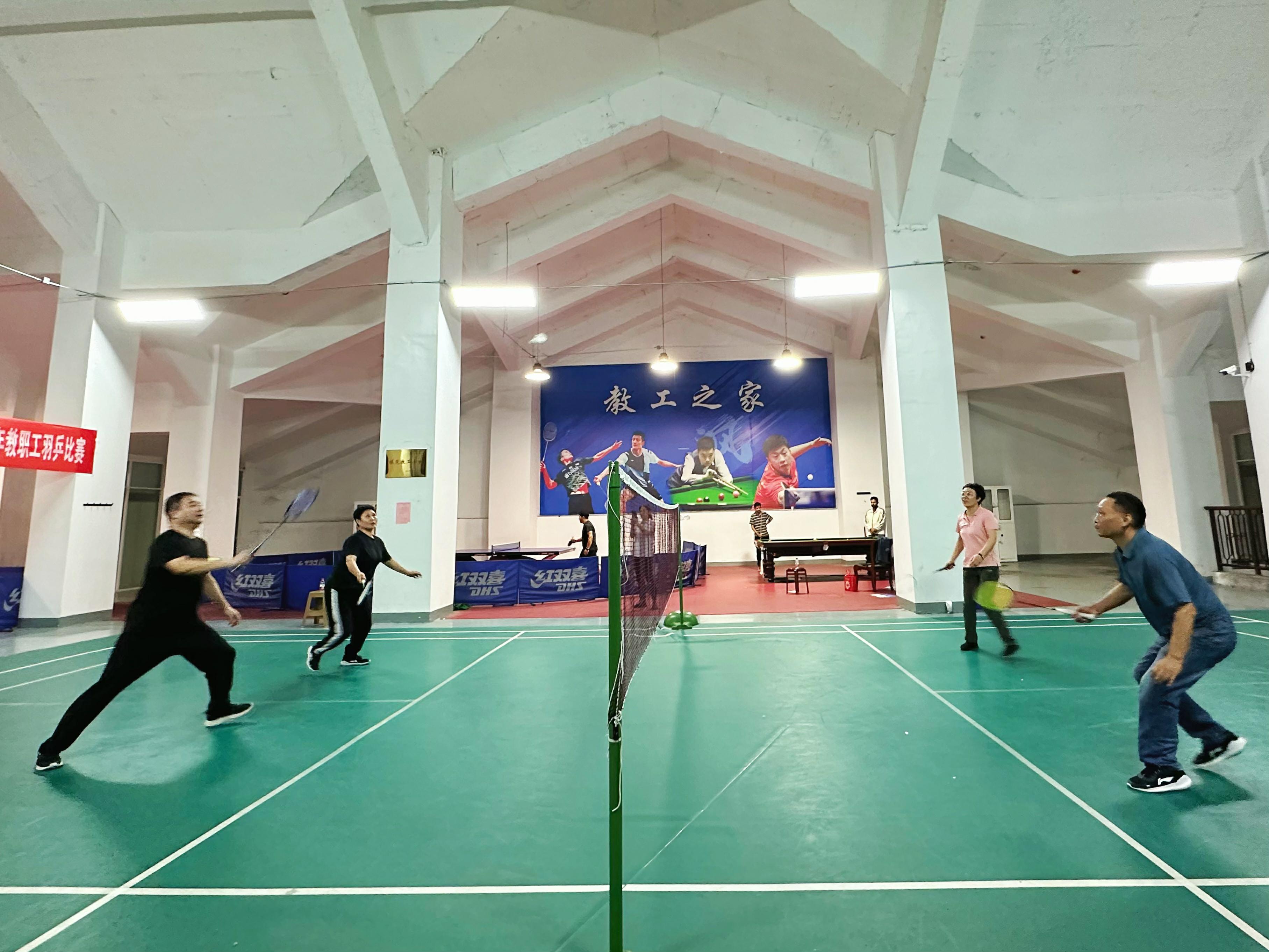 此次比赛秉承“友谊第一,比赛第二”的精神,乒乓球和羽毛球各设立男子双打、女子双打、男女混双项目,采取三局两胜制。两类比赛同时进行,赛场上老师们各展绝技。