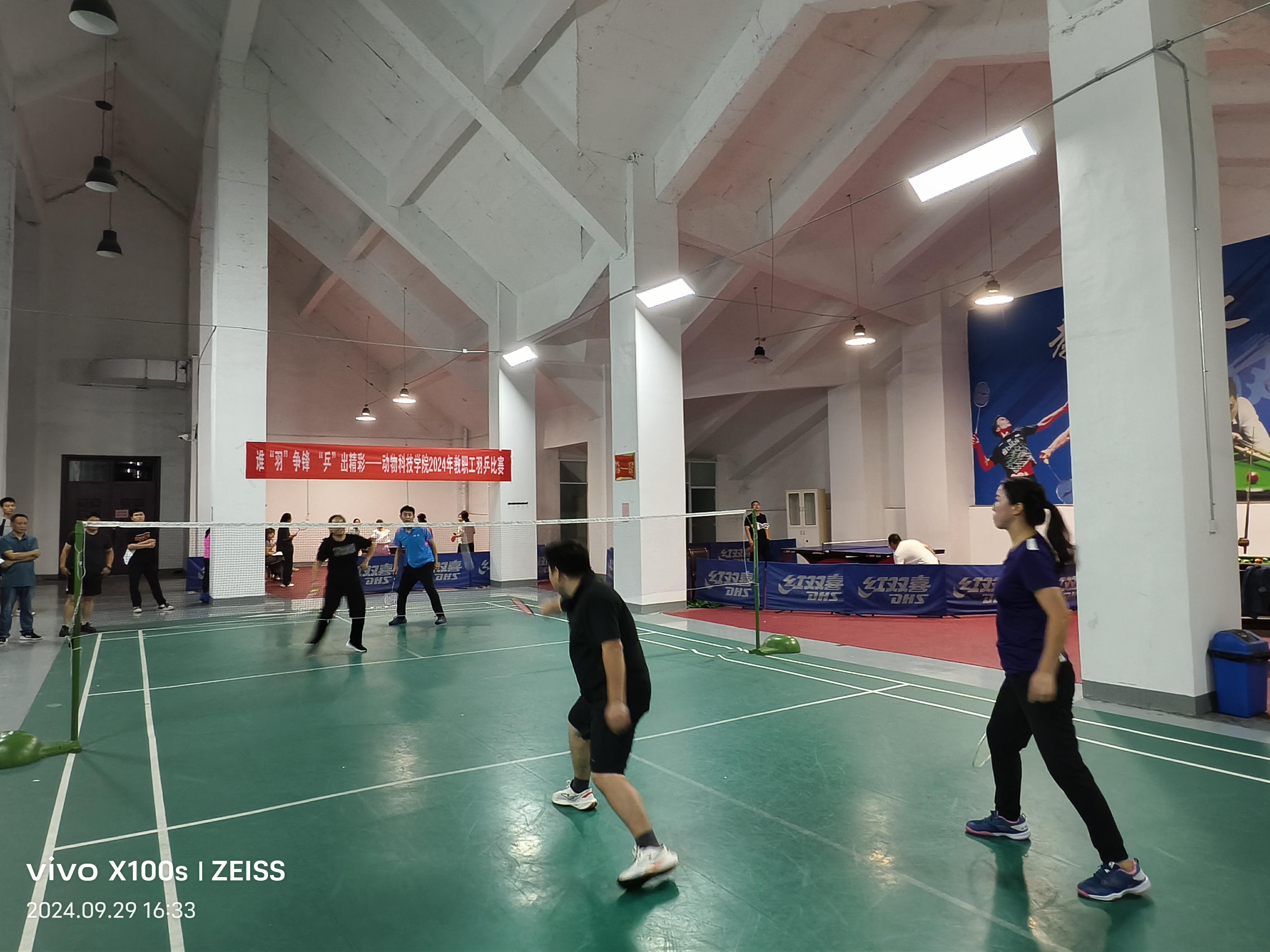 于9月29日在龙子湖校区第一实验楼六楼教工之家举办以谁“羽”争锋,“乒”出精彩为主题的2024年教职工羽毛球乒乓球比赛。