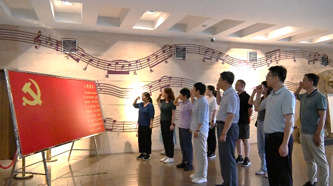 在解说员的带领下,大家有序参观了纪念馆的各个展厅。展厅共包含六个部分,分别为“大别风雷,星火燎原”,“红色摇篮,将军故乡” ,“红色苏区,共铸辉煌”,“红色土地,艰苦卓绝”,“江淮抗战,中流砥柱”和“中原突围,铁流千里”,以数千幅图片和实物对应的方式,全面展示了鄂豫皖革命根据地形成、发展和不断壮大的过程,大别山“28年红旗不倒”的光辉历史,着重介绍了从大革命时期到解放战争时期各个历史阶段发生在鄂豫皖大地上的重大历史事件。从艰苦卓绝的抗日战争到波澜壮阔的解放战争,从英勇无畏的革命先烈到无私奉献的共产党员,一幅幅照片承载着一段段刻骨铭心的历史,所展现的革命老区的大别山精神永垂不朽。最后,全体党员庄严地面向党旗,重温入党誓词,铿锵有力的誓言在党史教育馆内回荡,每一位党员都深感肩上的责任与使命。
