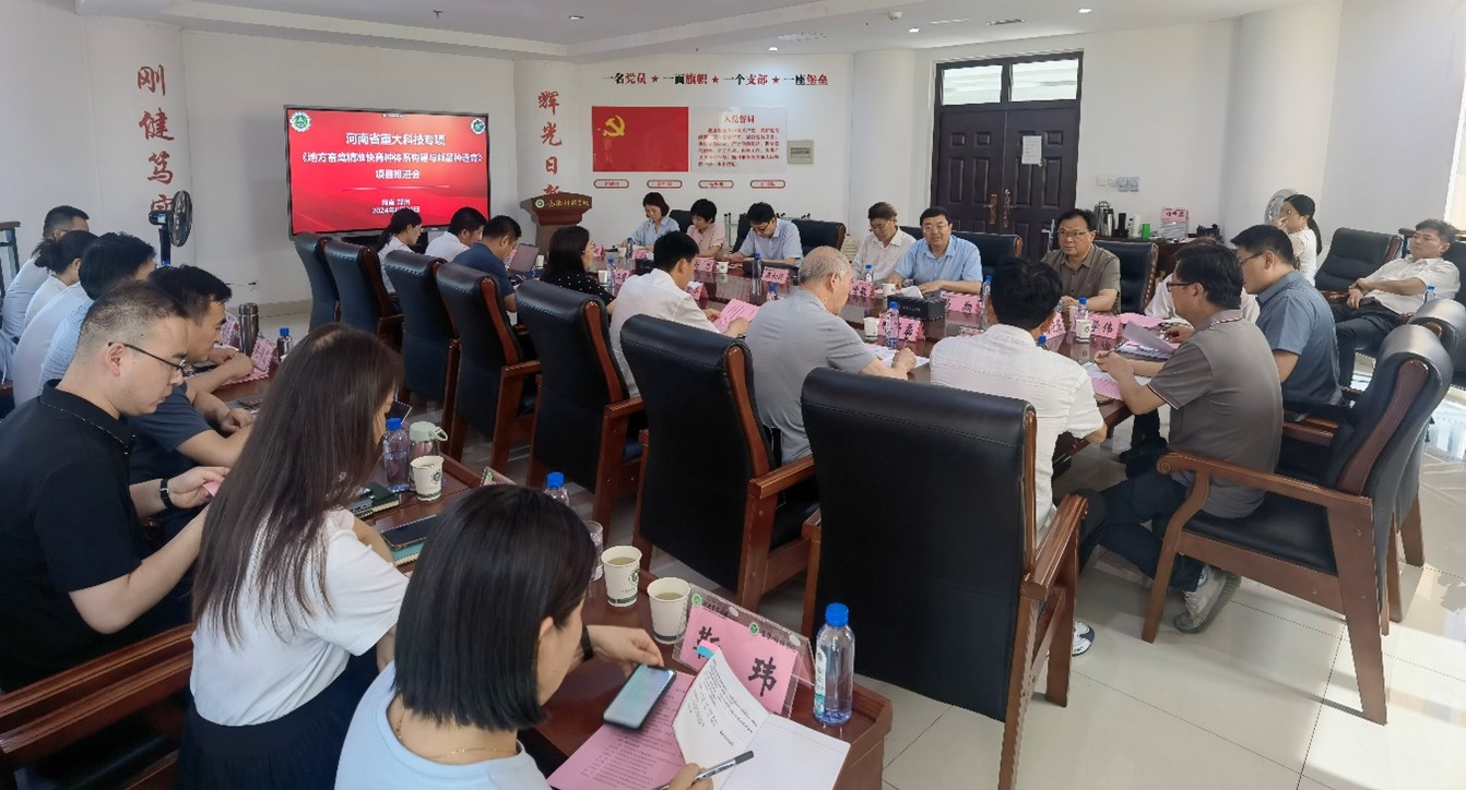 蒋瑞瑞教授介绍了与会人员,科技处副处长张世敏致欢迎辞,对各位专家、企业家表示欢迎,对省科技厅的支持和帮助表示感谢。科技厅农业农村处马富举主任发表了讲话,表示推进会即是总结也是提升,希望项目组在按时完成项目任务的同时,及时向项目主管部门上报重大科研成果,对取得的阶段性成果,要与基层产业进行对接,做好成果的落地转化并做好宣传报道,提高科技成果的市场影响力和科技传播力。然后各单位子课题负责人分别对照任务书要求,从课题的任务设置、具体实施进展、考核目标完成情况、阶段性成果、存在的问题和不足、下一步工作计划等方面,对课题的整体工作进展进行了总结和汇报。项目负责人康相涛院士及各课题负责人分别对每个子课题的进展情况及存在的问题进行了分析,并提出相应的要求和解决办法。 马富举主任代表省科技厅进行了总结,对项目的顺利实施以及取得的进展和成果给予充分肯定,期望项目组在结项时能取得更多突破性的创新性成果,推动成果熟化落地,用成果支撑产业进步。最后,项目负责人康相涛院士对项目的总体实施和进展情况进行了总结。他指出,能够获得科技厅的信任和资助,项目得以顺利实施,我们一定要珍惜来自不易的机会,集中力量联合攻关,快速突破技术瓶颈,在项目实施的最后关键阶段按时高质量完成研究任务和目标,并感谢项目组成员为项目实施付出的努力,希望再接再厉取得更多的突破性成果。