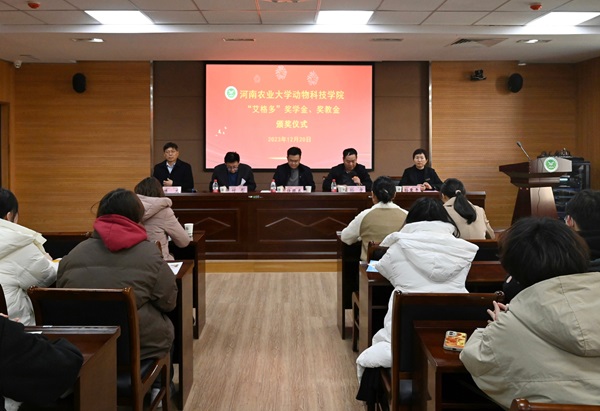 于龙子湖校区第一实验楼南321会议室举行2023年“艾格多”奖学金、奖教金颁奖仪式。河南艾格多科技集团总裁任振东与人资行政总监孙爱平、百家乐玩法