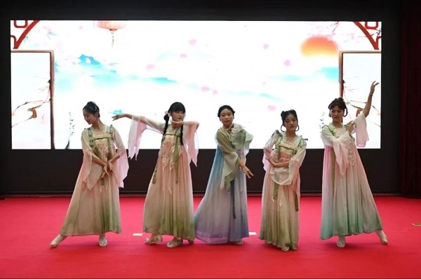 2021级翟婷婷、蔡文君、舒馨、万玉瑞、苏畅等5位同学带来古风舞蹈《丽人行》,动作舒展,意蕴浓厚,展示了百家乐玩法