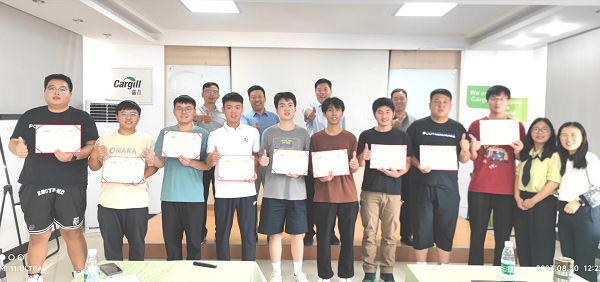 最后,贾书记对每位同学的实习汇报进行了高度总结,并忠告同学们实习收获的不仅是知识,还有人生经历,不经历风雨怎能见彩虹,希望同学们能够继续发扬勤奋好学,吃苦耐劳的精神。同学们优秀的表现更离不开公司指导经理的关心和指导,贾书记对公司每位辛勤付出的领导也一并表示感谢,并希望未来与嘉吉的合作更加长久,更加深入。