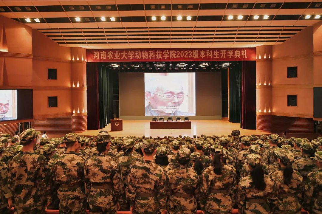 2023级动物生产类10班马雨航作为新生代表发言,他以与动物结缘的经历为引,结合入校感受,倡导大家怀揣专业梦想,坚信专业选择,在学习中寻求真理,在兴趣中攫取快乐,在实践中赢得价值,雕刻属于自己、属于动科人的光荣印记。
