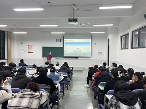 菅复春教授担任主讲,2022级全体研究生参加会议。