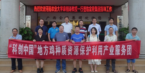 康相涛教授作为“科创中国”地方鸡种质资源保护利用产业服务团团长,此次广西之行的另一目的是开展产业调研和科技服务工作。康相涛教授团队考察了广西金陵农牧集团和广西富凤农牧集团,了解广西当地禽类养殖概况和优良品种选种选育中存在的问题和困境。团队成员田亚东副院长介绍了团队多年来在家禽养殖、地方鸡保护利用、育种技术研发和创新等方面做的工作和取得的成果。座谈交流后,两个企业均表示希望得到康相涛教授团队的帮扶,解决他们实际生产中遇到的保种选育和产业升级改造等问题。康相涛教授表示我方可以派驻青年教师和研究生赴企业进行指导和实习,解决生产中遇到的难题,加速校企产、学、研一体化发展。