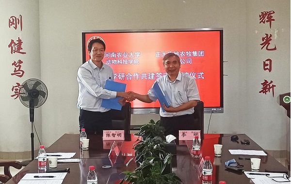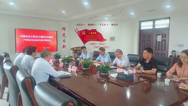 与正大康地农牧集团有限公司产学研合作启动会及签约仪式在龙子湖校区第一实验楼北330会议室举行。副校长康相涛教授、正大康地集团副总裁兼正大康地开封公司总经理陈智明博士(泰籍)、正大康地开封公司常务副总经理刘利萍、正大康地开封公司行政经理李森、院长李明教授、副院长付彤教授、动物营养与饲料科学系主任陈文教授、副主任常娟副教授、李德峰副教授和青年教师王利军博士等校企双方代表参加活动,活动由副院长付彤教授主持。