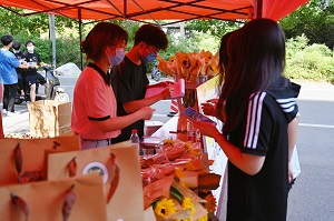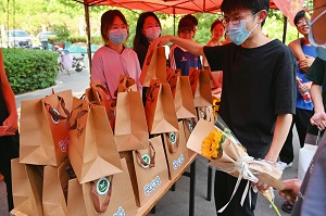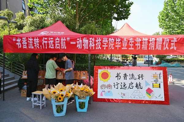 于桃李园学生公寓楼下举办“书香流转 行远启航”毕业季书籍捐赠活动。