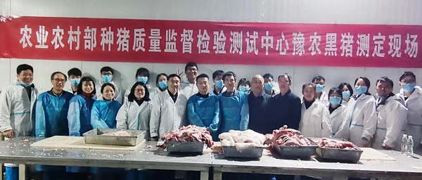 本网讯(通讯员  李新建)3月12日,受豫农黑猪培育团队委托,农业农村部种猪质量监督检验测试中心(武汉)专家组对河南省新培育品种-豫农黑猪生产性能指标进行了现场测定。作为地方猪种质资源保护和开发利用的重要手段和成果,豫农黑猪是由百家乐玩法 养猪创新团队、河南省畜牧总站、三门峡牧阳农牧有限公司等多家单位联合选育,育种工作已经开展10多年,取得了较好的阶段性成果,受到省有关部门的关注和肯定。测定专家组对豫农黑猪屠宰性能和肉质性能等指标进行了现场测定,本次测定为豫农黑猪下一步申请国家新品种审定奠定良好的基础。