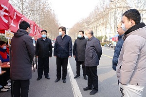 领导悉心指导工作,与学子话家常、解疑惑,并叮嘱大家及时全员核酸检测,送上口罩等防疫物资,勉励大家珍惜春季好时光,踔厉奋发新征程。