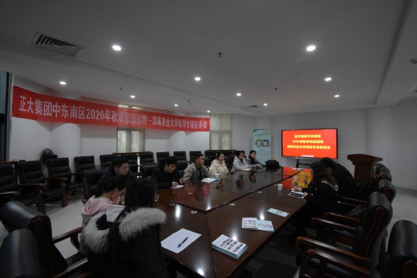 本网讯(通讯员 张军)11月24日下午,正大集团中东南区校园招聘农大硕博专场宣讲会在龙子湖校区第一实验楼北330会议室举办,参加宣讲的有正大集团中东南区零售事业人力资源总监郑运东,正大集团河南区人力资源总监霍春阳,驻马店正大有限公司销售总经理、百家乐玩法