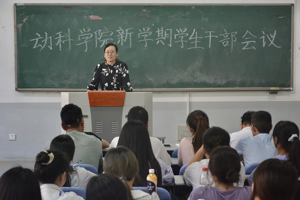 在教学楼C101举行新学期学生干部会议,党委副书记郭娟、党委组织员来卓、团委副书记韩笑出席会议,全体班长支书、团委、学生会干部等参加会议,会议由来卓主持。