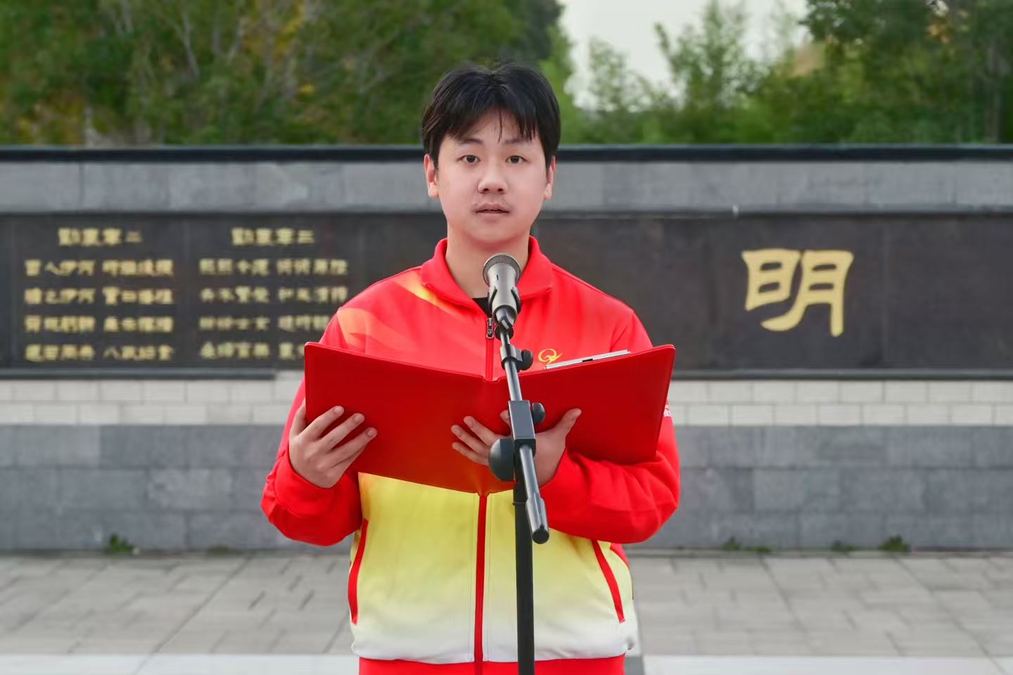 国家奖学金获得者、校三好学生、2023级本科生任成毅作国旗下的演讲《学海逐梦砺初心,修身笃行赴韶华》。
