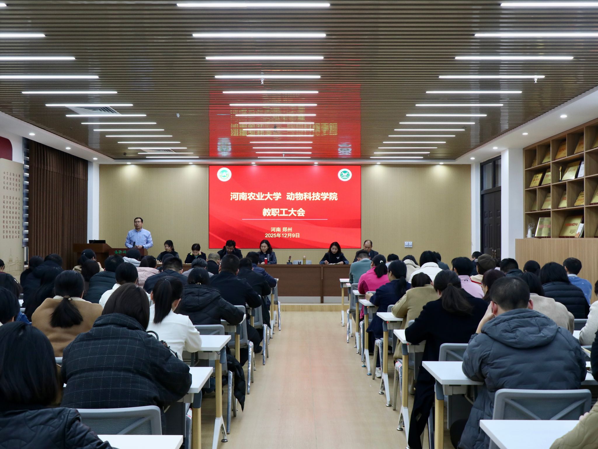 在第一实验楼召开全体教职工大会,全体领导班子、教职工参会。会议由院党委书记张利冰主持。