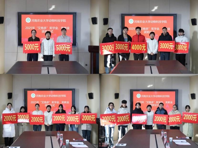 于龙子湖校区第一实验楼南501会议室举行2025年“艾格多”企业奖学金、奖教金颁奖仪式。河南艾格多科技集团人资行政总监孙爱平、校友办副主任闫东、百家乐玩法