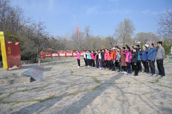 领导班子带领教工党员40余人赴新密市田种湾村中原豫西抗日纪念园开展了“重温峥嵘岁月,牢记初心使命”的主题党日活动。