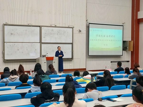 随后,推免至中国农业大学的2018级王露露同学从学习心得、未来规划等方面与学弟学妹们分享学霸秘笈,并鼓励大家端正学习态度,明确目标,勤预习,常复习;推免至中国农业大学、国家奖学金获得者2018级姜喆奕同学通过满满的干货介绍了自己保研之路的独到心得,并告诫大家:态度有时高于方法,全面发展才能不断提升自己;校就业指导中心学生助理、励志奖学金获得者2019级李文琪同学就选好方向、起步要稳,扎实基础、砥砺奋进,回顾总结、完善自己,立足本心、展望未来等四个方面分享自己学习生活的丰富经验和感悟体会;院党建学生负责人、连续三年担任团支书的2019级陈淑同学,从学习、工作、课余生活、未来发展四个方面号召大家要脚踏实地,大胆尝试新事物、新角色,力求找到最适合自己的生活节奏。