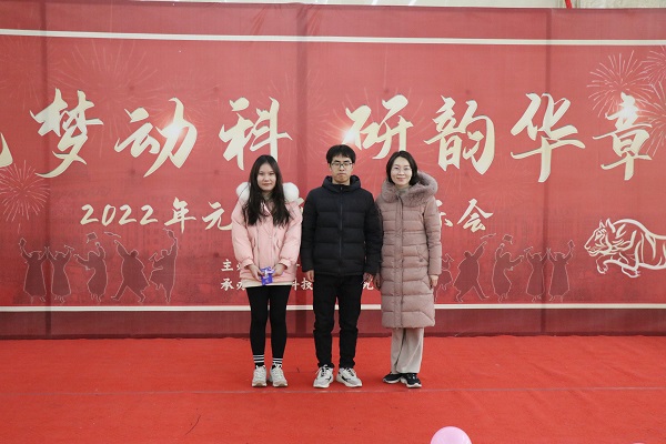 在龙子湖校区第一实验楼一楼大厅举办了“筑梦动科,研韵华章”2022年元旦研究生喜乐会。院党委书记贾磊、院长李明、院党委副书记郭娟、副院长田亚东、院团委书记韩笑、研究生辅导员张彦华和全体研究生参加,共同喜迎元旦佳节。