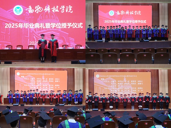 副院长付彤宣读《2025届优秀毕业生名单》、副院长孙宇宣读《2025届博士和硕士学位授予决定》、副院长李转见宣读《2025届学士学位授予决定》。现场为省、校、院级优秀毕业生颁发证书并合影留念。