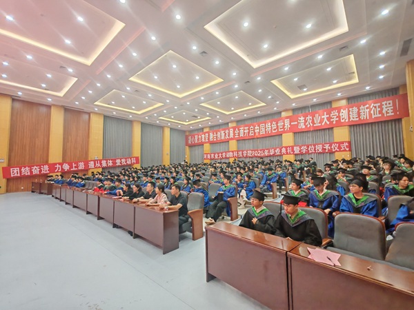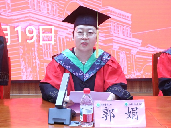 于龙子湖校区举行2025年毕业典礼暨学位授予仪式,全体领导班子、学位委员会委员、教师代表、2025届毕业生及家长代表齐聚一堂,共同见证这一庄重而难忘的时刻。典礼由院党委副书记郭娟主持。