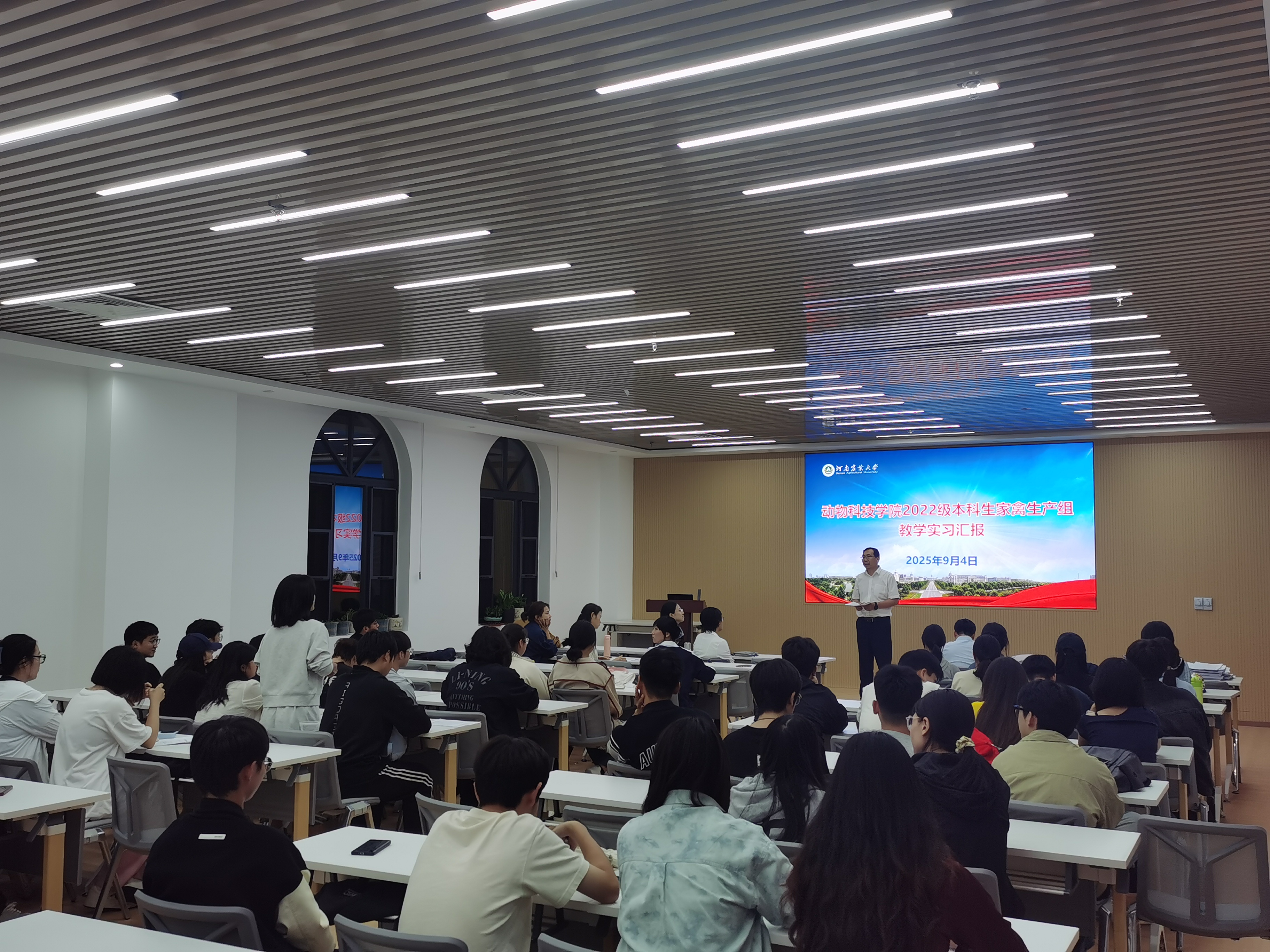 本网讯(通讯员 郭玉龙 )金秋时节结硕果,实践育人促成长。2022级本科生家禽生产组已圆满完成为期2个月的教学实习任务,学生于8月中旬从各实习企业平安返校。为系统梳理实习成果、总结实践经验,9月4日,百家乐玩法 召开2025年“2022级本科生家禽生产组教学实习总结汇报会”,百家乐玩法 田亚东教授、黄艳群教授、李转见教授、李文婷教授、李红副教授、李东华副教授、张彦华副教授及金炜炜、郭玉龙等实习指导老师,与2022级家禽生产组全体本科生共同参会。