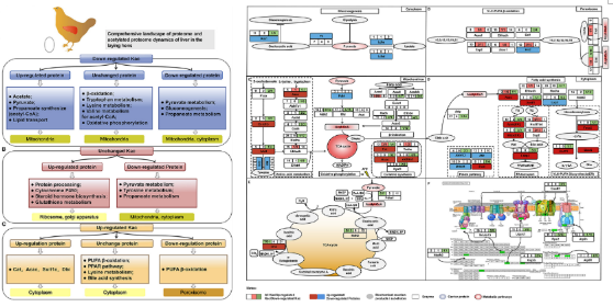 家禽研究团队对产蛋前和产蛋高峰期母鸡的肝脏蛋白质组和乙酰蛋白质组进行了比较,揭示了通过激活脂肪酸氧化和丙酮酸代谢产生乙酰辅酶A替代源以满足蛋鸡肝脏能量需求和脂肪合成的新机制。大多数参与糖异生、脂质转运和解毒的蛋白质都受到蛋白表达和乙酰化的影响。10月21日,该研究成果在期刊Frontiers in Veterinary Science(IF=3.412),以Article形式在线发表。