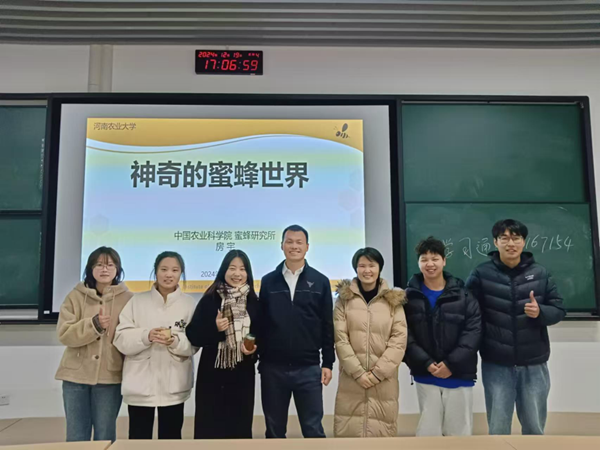 讲座中,房宇生动阐述了蜜蜂复杂而精妙的社会行为,从独特的舞蹈语言到严谨的分工协作,让师生们领略到蜜蜂世界的神奇。在基因研究方面,他分享了如何筛选与蜜蜂抗逆性状相关基因,为培育适应多变环境的蜂种提供理论支撑。对于蜜蜂高效饲养技术与优良蜂种选育推广,房宇结合实际案例,介绍新技术、新方法对提高养蜂效益的重要性。