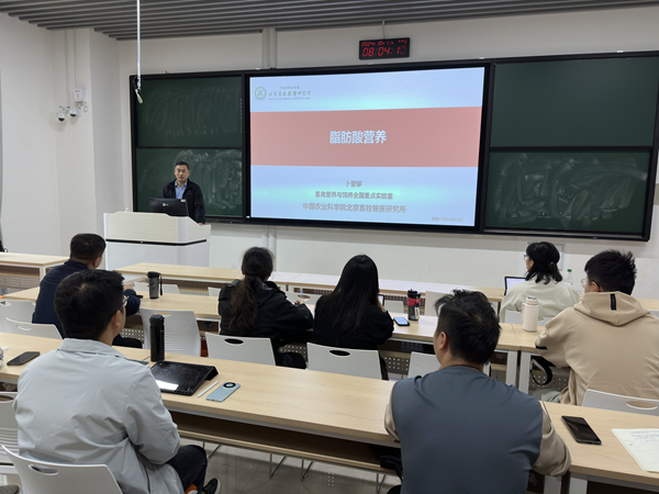 北京畜牧兽医研究所卜登攀研究员带来以“脂肪酸营养”为题的学术报告,论坛由王志祥教授主持,高腾云教授、王林枫教授等教师及研究生参加报告会。