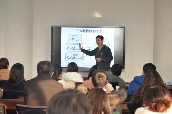 张玉波的报告内容丰富、题材新颖,讲解风趣幽默,深入浅出,使在场师生对三位基因组学有了进一步的认识和了解,与会师生受益匪浅。