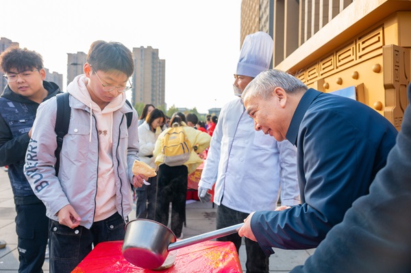院领导为学生盛羊肉汤