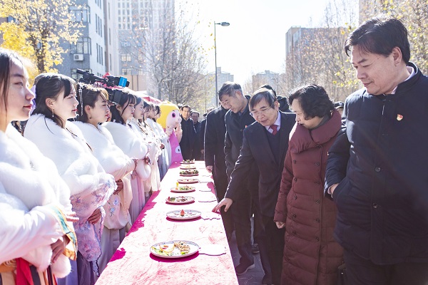 畜牧产业工程专业大一新生马燕甲手里端着红烧肉,眼睛瞟着“全猪宴”,连连赞叹;那边,动物科学专业大三学生王家乐盯着视频里的智能养猪机器人观察许久,转身与同学聊起专业课上老师讲授的现代畜牧业产业升级。