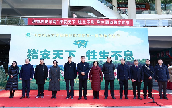 院党委书记贾磊主持开幕式,院长李明在讲话中介绍了举办本次文化节的初衷、并借“福猪拱门“之意祈愿各位来宾富贵吉祥,副校长尹新明宣布动物文化节开幕。